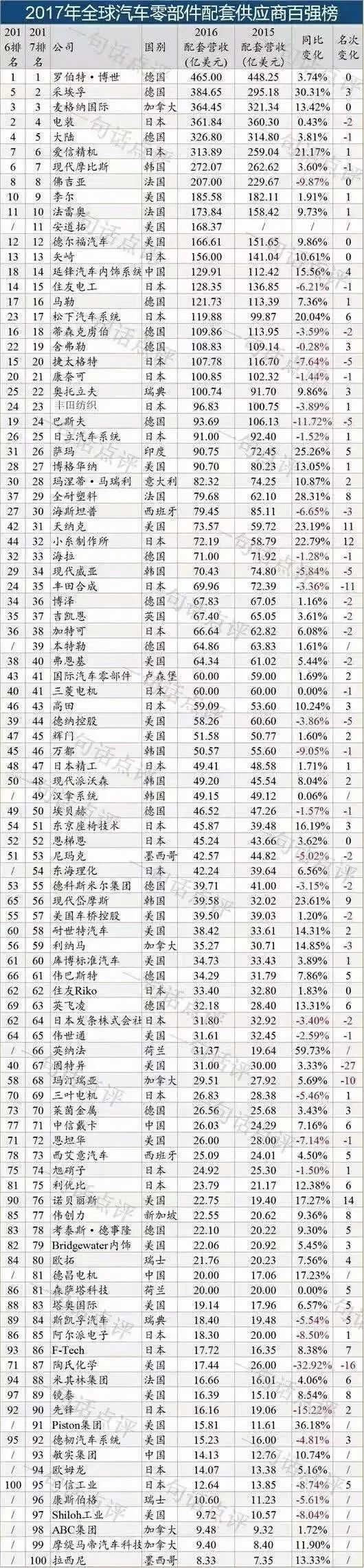 2017 global auto parts TOP100 suppliers list